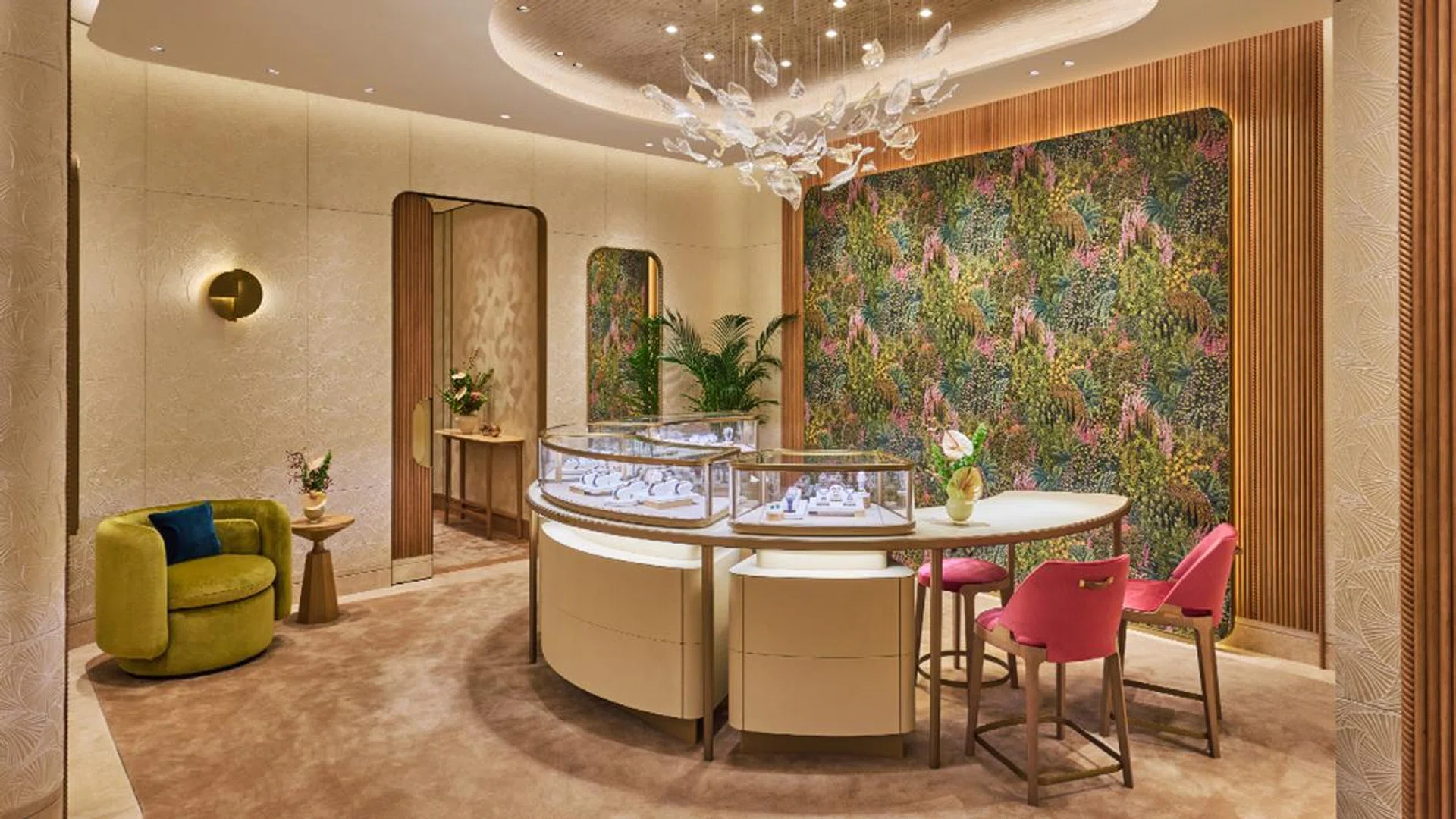The space also introduces two exclusive hideaways: a dreamy Bridal area and a Client Care lounge, both housed in chic shop-in-shop concepts. The Bridal suite is all soft pastels and a hornbill-adorned feature wall (because these birds symbolise lasting love – romantic, much?). Meanwhile, the Client Care lounge – the first of its kind here – dials up the cosy vibes with earthy tones and botanical details, offering a stylish space to pamper your Cartier treasures.
