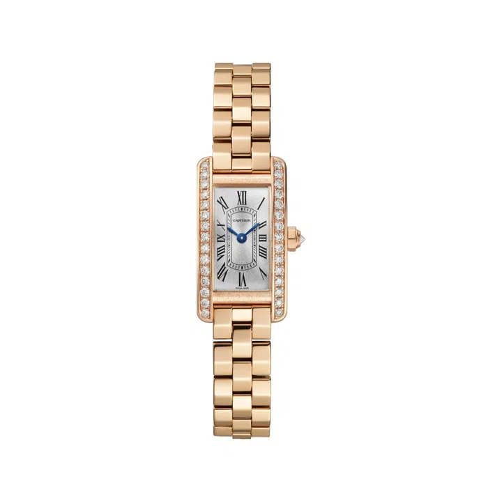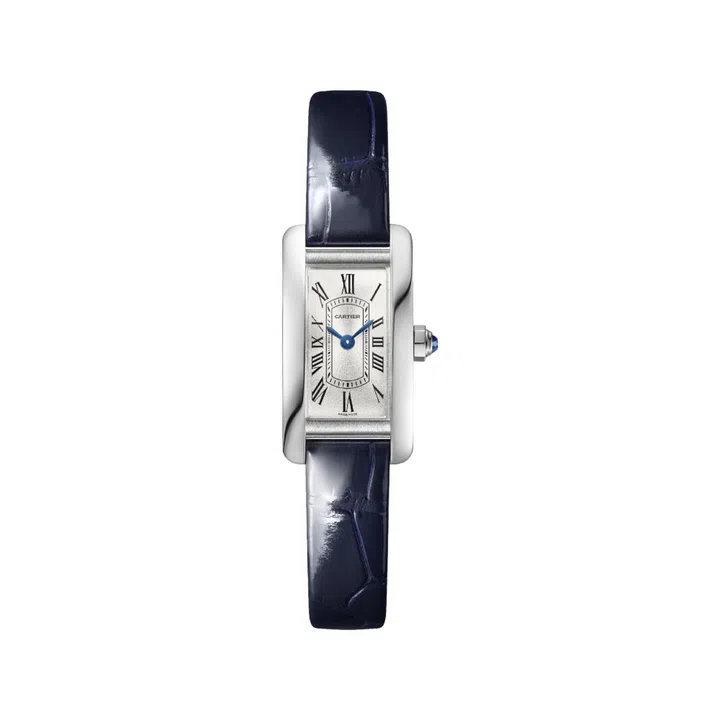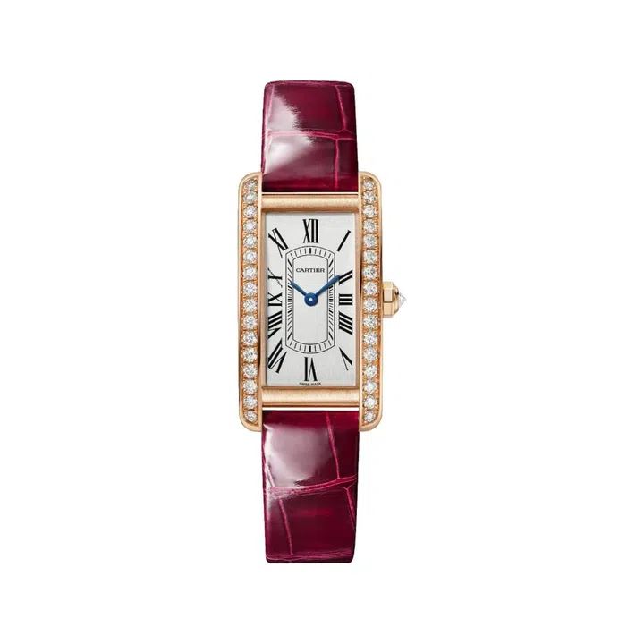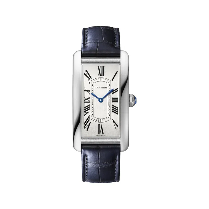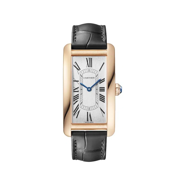 The first Tank Americaine was launched in 1988 as the successor to the Tank Cintree. While both are rectangular like the original Tank, the Americaine and Cintree had longer, narrower dials and a more curvaceous profile. The difference between these two, however, is much more subtle. As a response to a market demanding larger watches, the Americaine was designed to be slightly bigger, with more rounded brancards than the Cintree, and with a flat case back instead of a curved one.