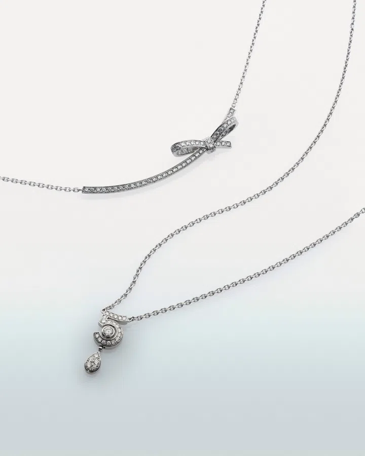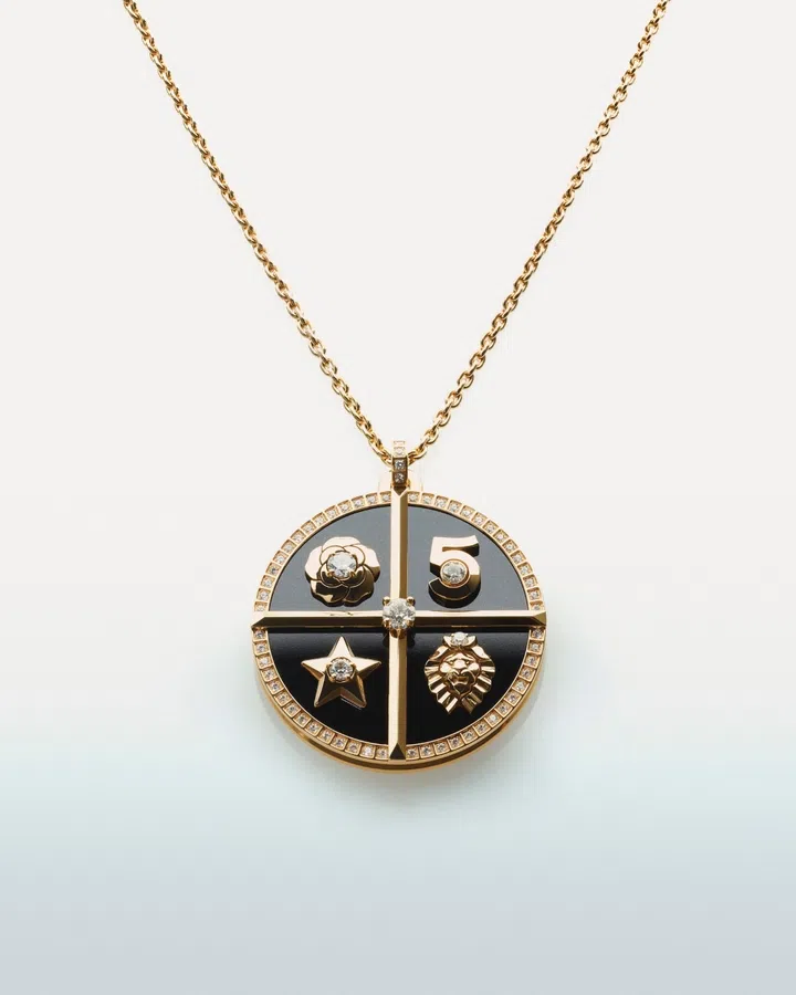 Joining this lineup of one-and-done statement pieces, Chance de Chanel line captures all of the maison’s signature emblems: the camellia; the number 5; the lion; the comet; and the signature, brought together in a reversible pendant that turns heads even when worn alone. Ahead, a closer look at these fine jewels.