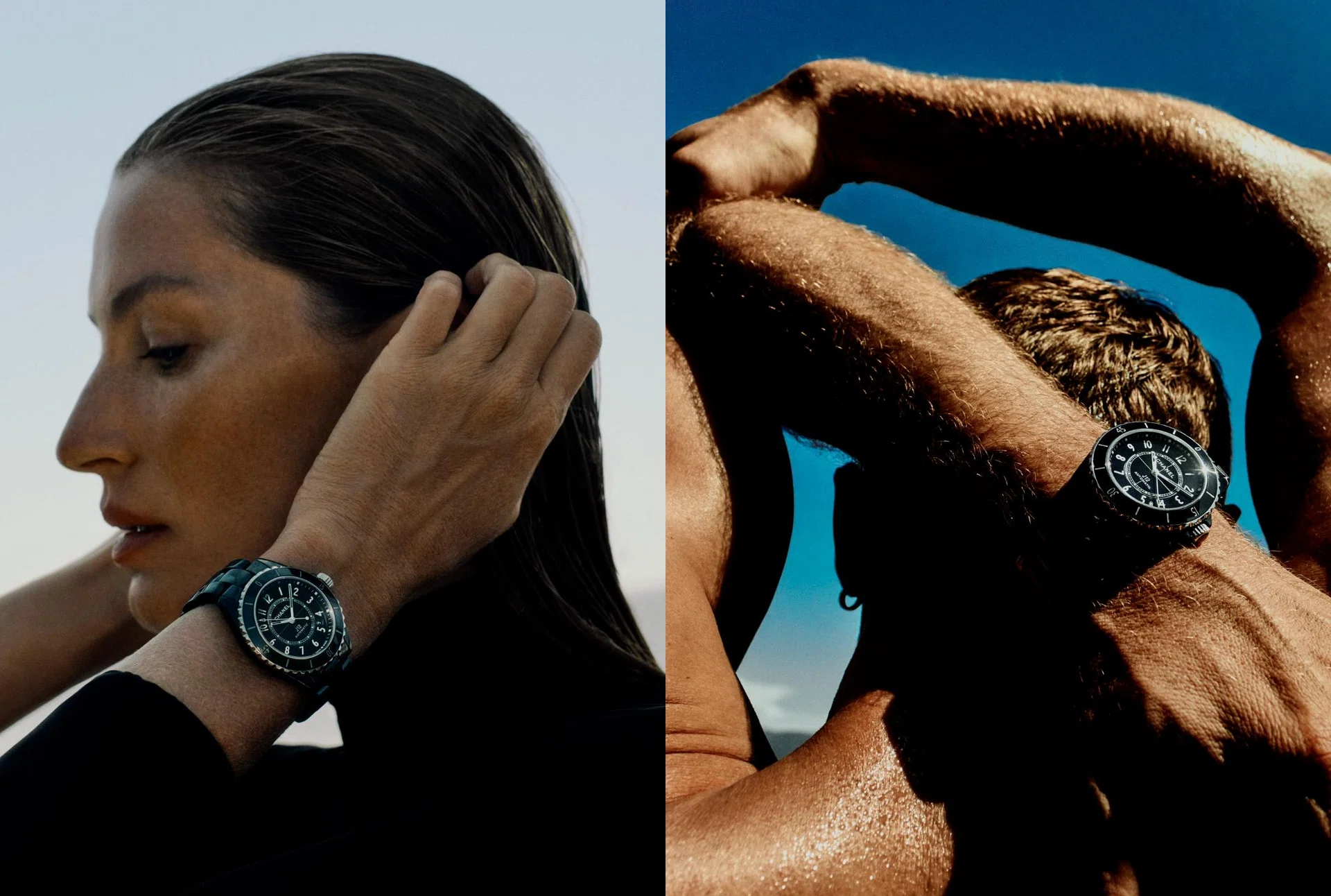 Starring Gisele Bundchen and Clement Chabernaud, Chanel’s latest J12 campaign goes back to the timeless ceramic sports watch’s original inspiration: water.