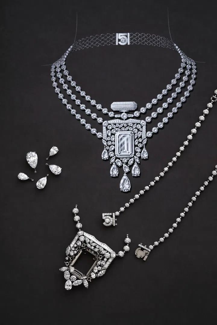 The 55.55 necklace gives you a preview of more high jewellery creations that will take inspiration from the iconic fragrance. It will sit within the new Collection N°5 – the first high jewellery collection by the maison to be dedicated to a perfume – that will be launched in May. The collection will comprise 123 pieces and be the largest high jewellery collection created by Chanel.