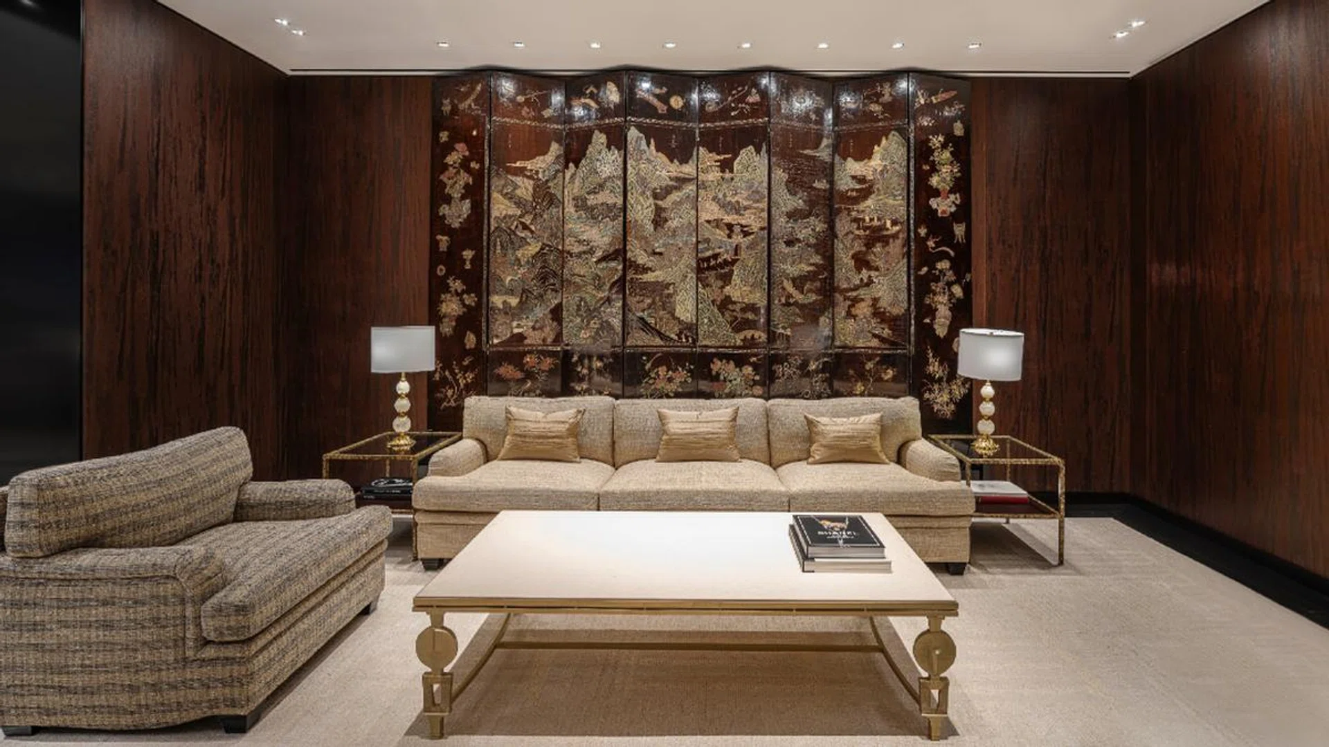 The reference to Chanel's apartment is most obvious in the private VIP salon – accessible via secret sliding doors. Here, the eye will be instantaneously drawn to the large panel of Coromandel screens which have features mythical Oriental motifs and are inlaid with mother-of-pearl. Now, there couldn't be a better ambience to admire the watches and jewels, could there?