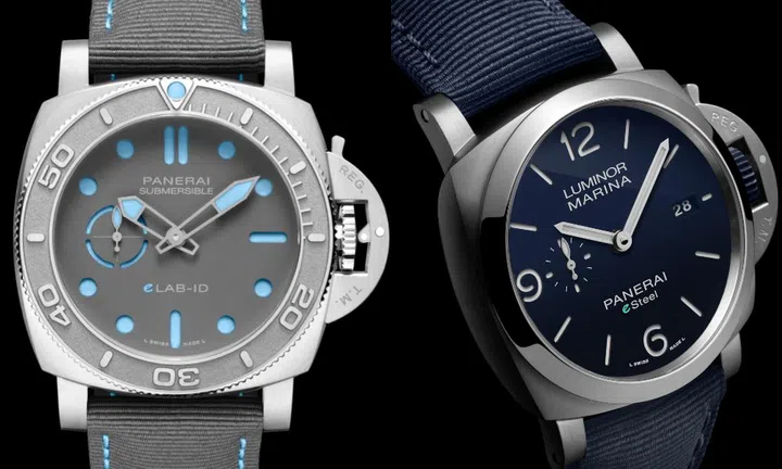 Panerai's two new sustainable timepieces, the Submersible eLab-ID (pictured, right)and Luminor Marina Steel (pictured, right), reflect a commitment to embrace sustainability and to raise the watchmaking community's awareness of climate change.