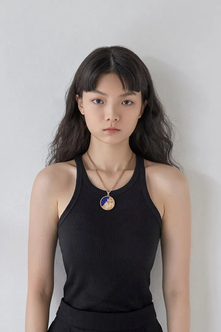 Yukee wears Zodiaque Geminorum rose gold and lapis lazuli necklace, Van Cleef & Arpels