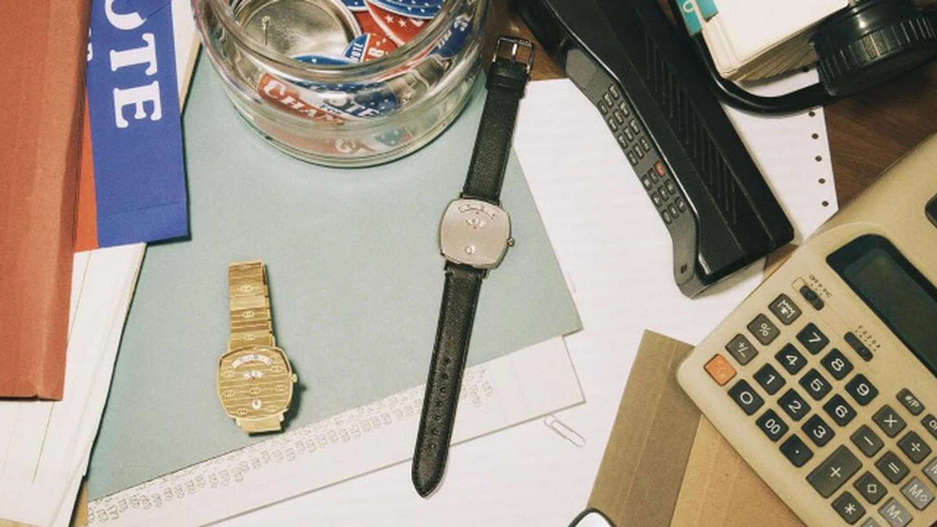 Flash forward to this month and Gucci is turning heads with the same kind of unorthodox and eccentric approach to watchmaking – so Alessandro Michele, isn't it? – for its latest Swiss-made collection called the Gucci Grip. For one, there is no visible dial on any of the quartz-powered pieces in this PVD-coated stainless steel series. Instead, a behemoth metal case conceals the face of the watch – giving a retro Brutalist influence.