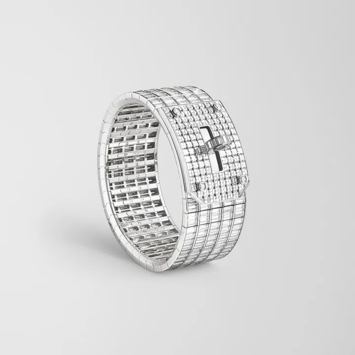 If the Hermes Kelly is merely a bag to you, you're not getting the full picture. The Kelly also happens to be a fine jewellery collection by the French Maison that riffs on the signature details of the trapezoidal bag which was created in the '30s (the bag earned its current moniker after Grace Kelly was famously photographed shielding her baby bump from the press).