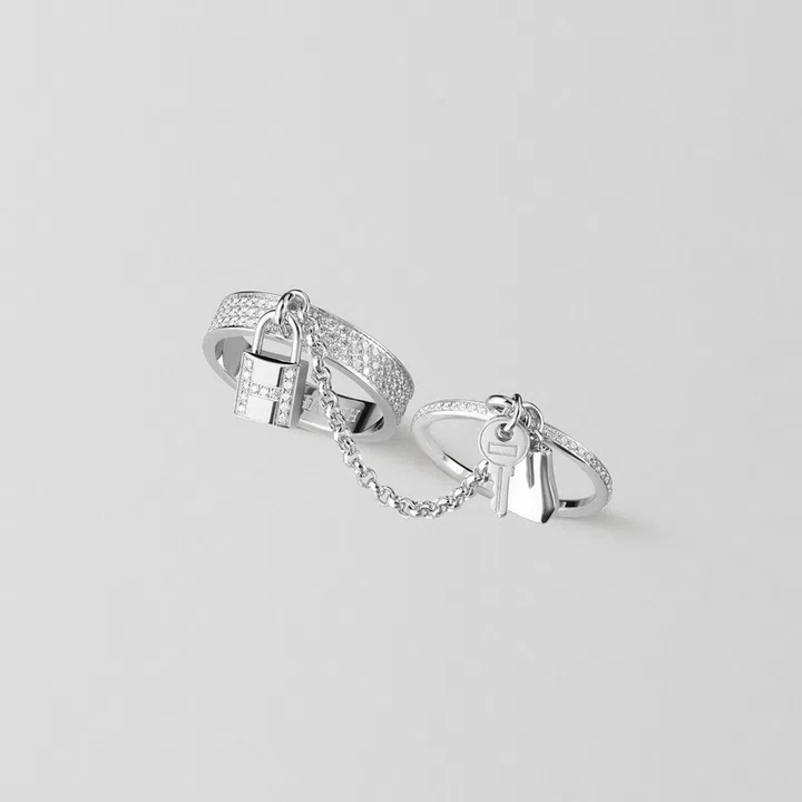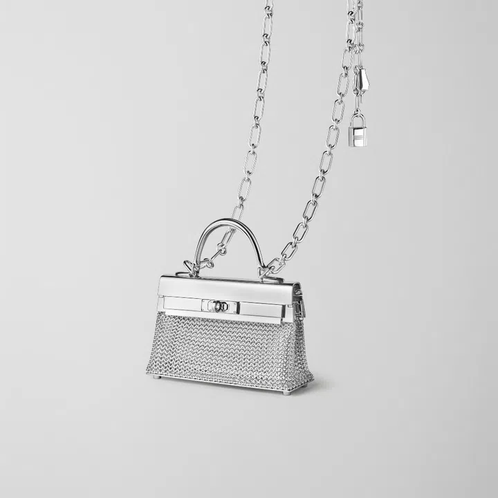 The 35-piece outing spans both fine jewellery and one-of-a-kind haute jewellery pieces,and exhibit the experimental and surrealist approach taken by Hardy and his atelier. Standouts include the Alpha Kelly double rings which feature two rings attached by a chain with charms in the form of a lock and key, as well as the Kelly Jewel Bag which is a miniature Kelly bag disguised as a silver necklace.