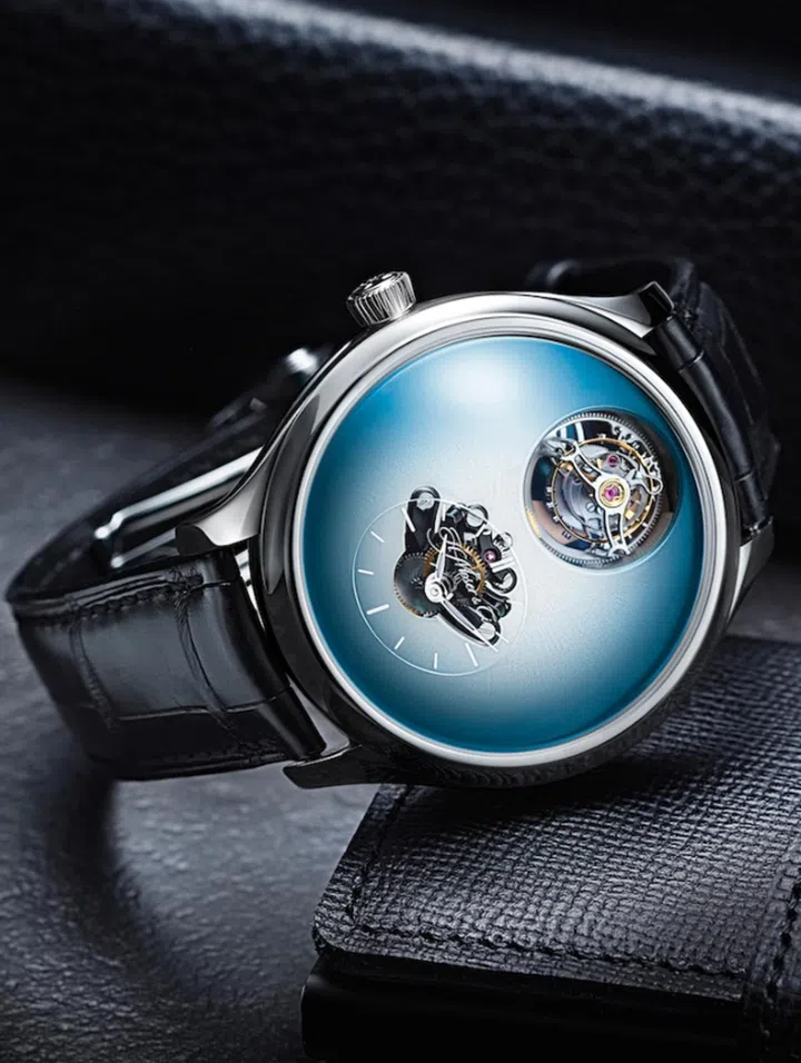 One’s famed for antics such as crafting watches out of Swiss cheese to make a point and the other, for quintessential avant-garde watches of high-tech horology. Put the essence of both brands together and it’s no wonder that H. Moser & Cie’s Endeavour Cylindrical Tourbillon H. Moser x MB&F would win for audacious creativity. Released in celebration of H. Moser & Cie and MB&F’s 15th anniversaries, this timepiece sees H. Moser & Cie marrying the sleek minimalism of its Endeavour collection with the architectural drama of MB&F’s FlyingT.