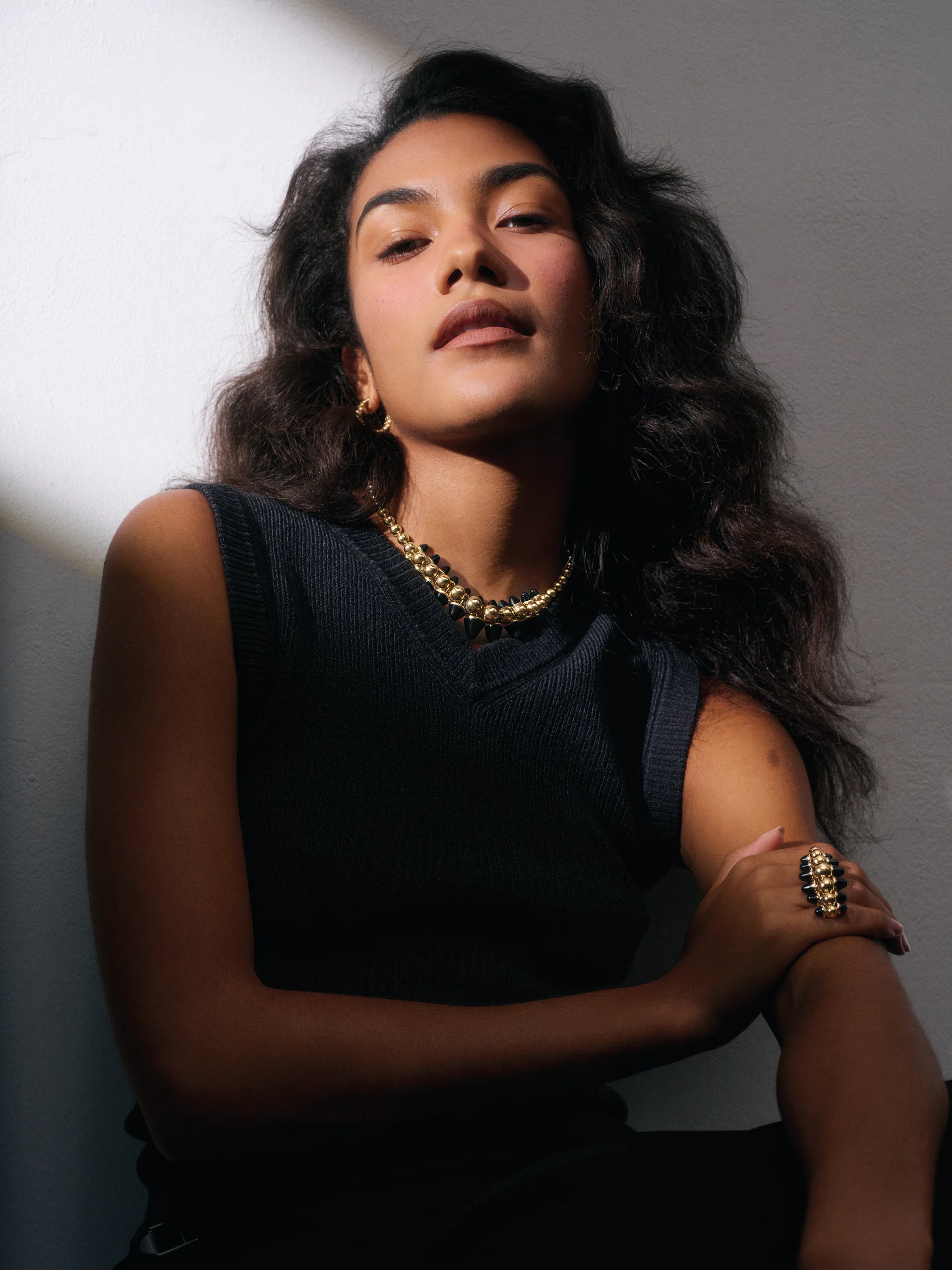 “Day to day, I keep things simple - usually a few rings or small hoops, layered in a way that feels like me. For something more dressed up, I’ll go for a bolder piece to elevate the look, but I still want it to feel natural. I always wear gold earrings though. They’ve kind of become my signature – they just tie everything together.”