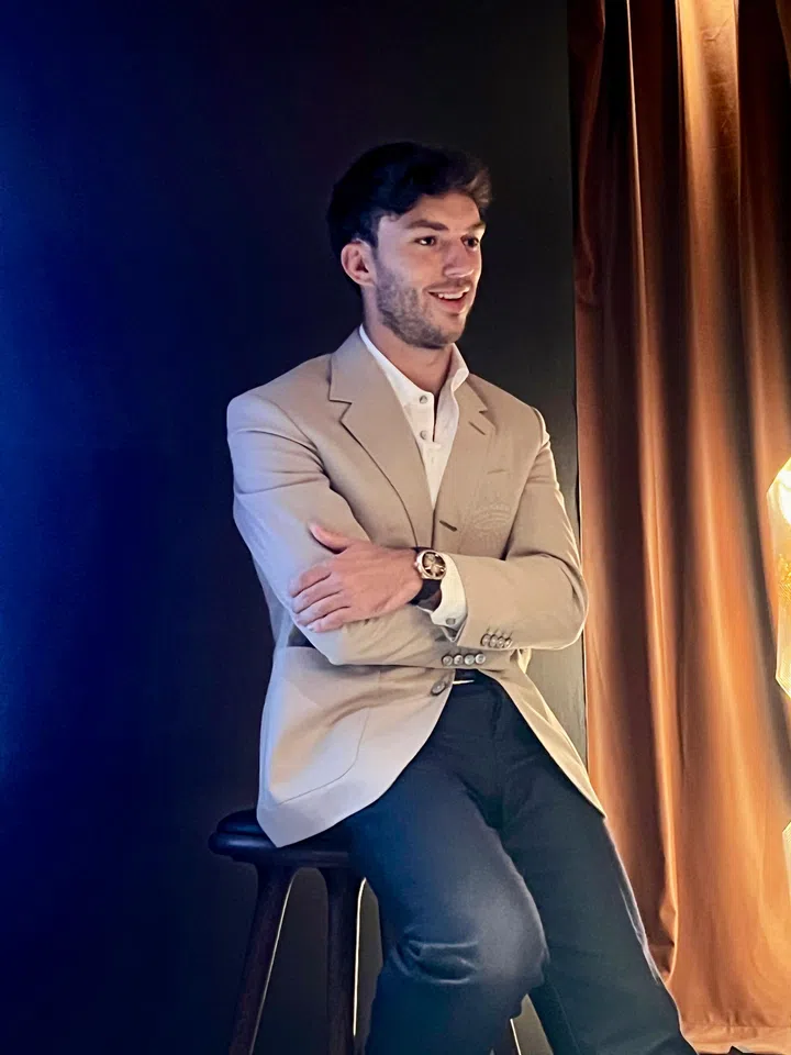 Pierre Gasly looks relaxed at a group interview for the launch of the Streamliner Tourbillon watch