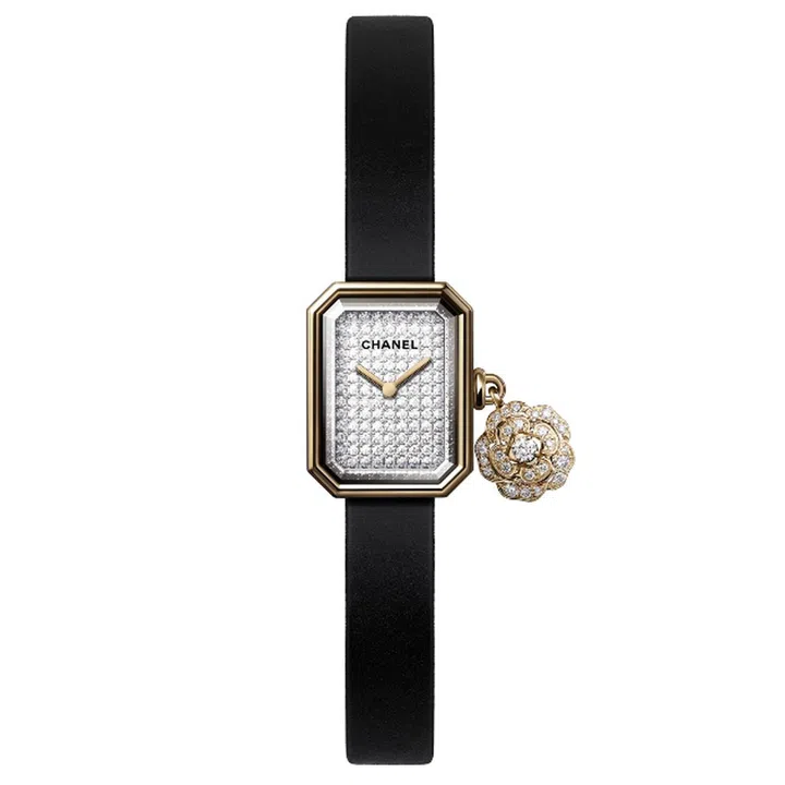 But how does this floral-shaped jewellery get translated into a watch design, you wonder? The answer is a playful, dare we say youthful, treatment given to the Premiere watch: a camellia-shaped charm is attached onto the side of the case that is usually reserved for the crown of a mechanical timepiece.