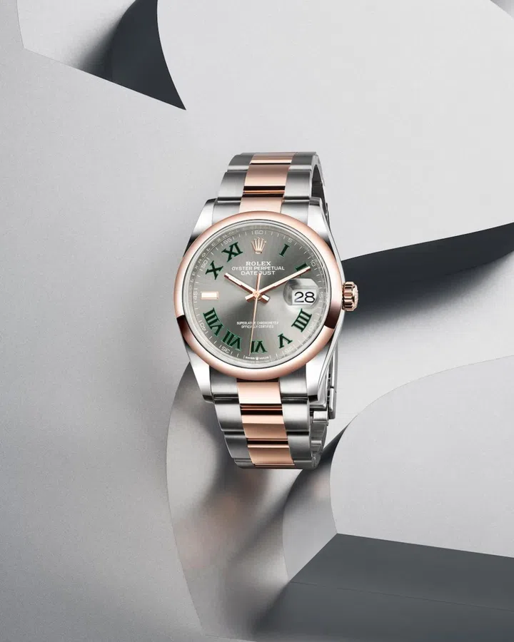 Taking the Datejust’s distinctive style to the next level is the Rolesor, which is exclusive to the Oyster Perpetual collection. Rolex watches in a Rolesor finish have their bezels, winding crowns and centre links in yellow gold or Everose, and their middle cases and outer links in Oystersteel, creating a two-tone effect that is equal parts cool and classic.