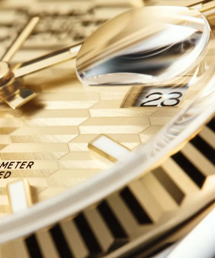 Clock the Oyster Perpetual Datejust’s Cyclops lens, which was presented for the first time in 1953 to magnify and make the date window at the three o’clock position – an emblematic feature of the Datejust – more legible. Since translated to other Rolex models as well, the Cyclops lens is these days crafted in sapphire with a double anti-reflective coating to make it even more effective and virtually impervious to scratches.