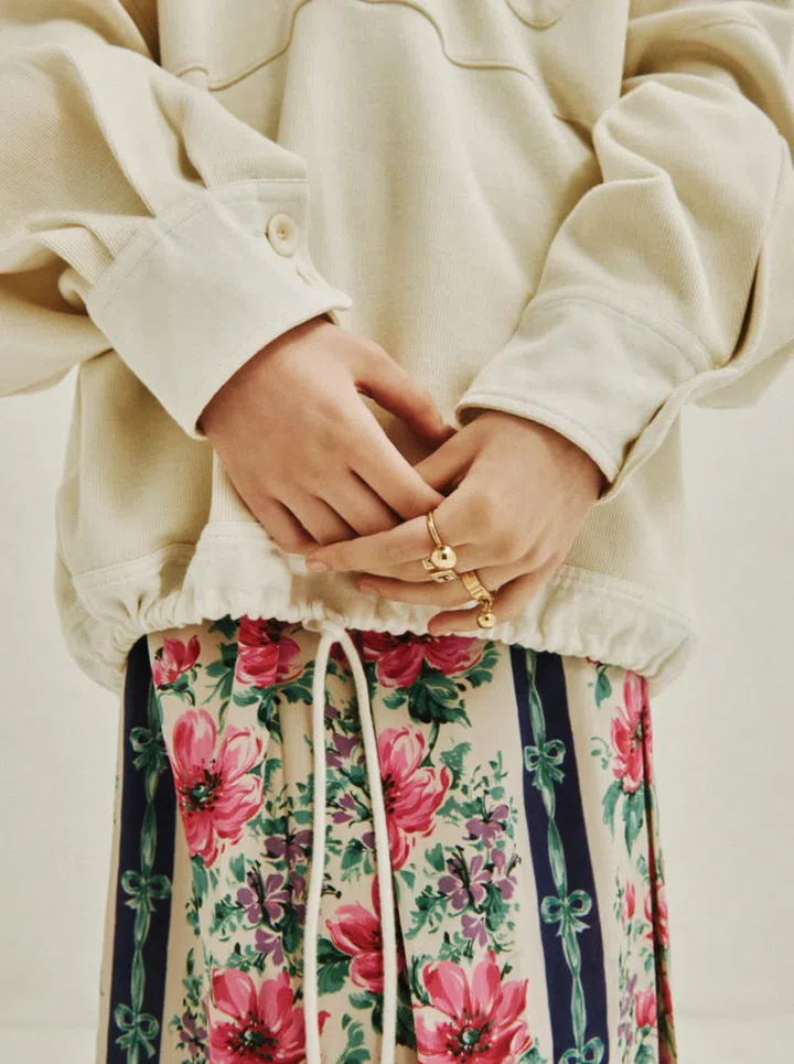 Tiffany Hardwear Wrap bracelet (worn as pendant), large Link bracelet and Ball ring, all in 18K yellow gold, Tiffany & Co. Cotton shirt, Burberry. Wool wrap skirt, Mulberry. Givenchy by Riccardo Tisci onyx and resin pendant, Givenchy. Cotton tights, Gucci. Leather booties, Celine