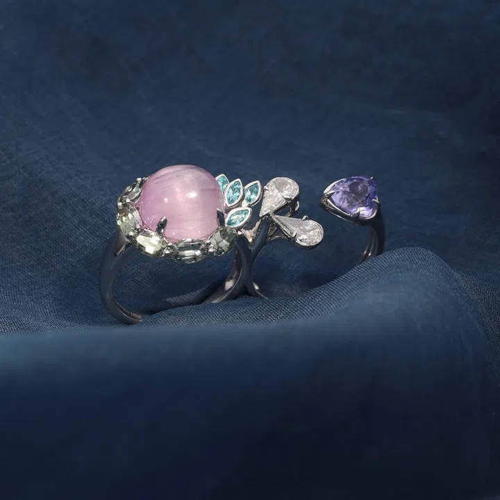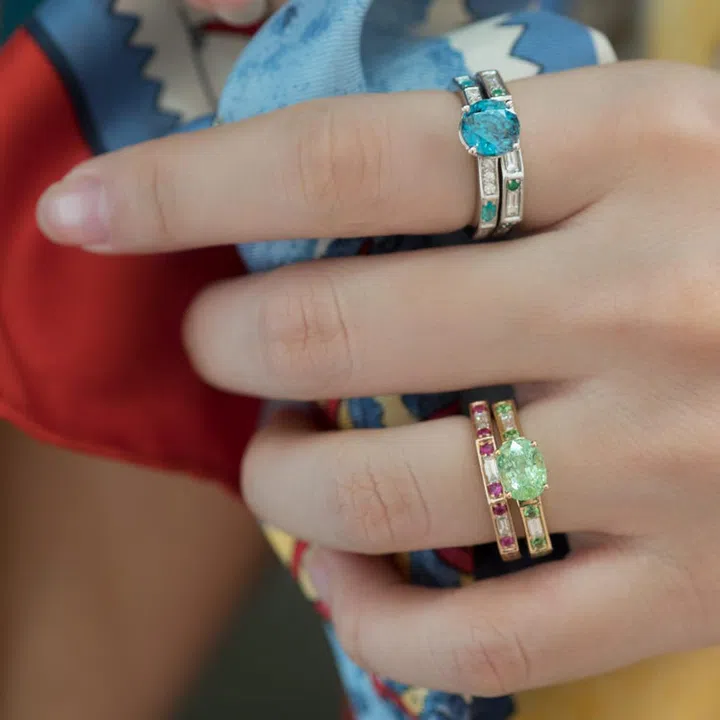 After a year of creating customised designs for their private clients, Tan and Schewchuk who cut their teeth at fashion labels like Marni and architecture firms like Takenouchi Webb respectively, are finally branching out to making ready-to-wear pieces. The debut collection called Bloom is a 30-piece outing that boasts the same kind of design M.O. the two are known for. Each piece features unexpected takes on gemstones that run the gamut from aquamarines, diamonds, emeralds, garnets, rubies, sapphires, spinels, and tourmalines.