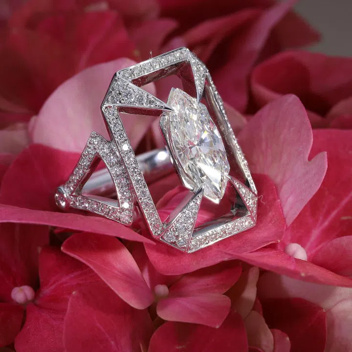 Repurposing old stones like this marquise diamond is Calla Lily's way of designing sustainably.