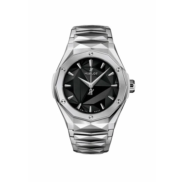 Since 2017, Hublot’s partnership with French artist Richard Orlinski has given rise to several successful timepieces distinguished by their highly dimensional and angular forms. This year, instead of the rubber straps the Orlinski watches usually come with, Hublot has crafted a bracelet in polished titanium to match the 40mm case of the Classic Fusion Orlinski Bracelet. Mixing chamfered facets with a mirror- polished finish, the striking bracelet has 83 components.
