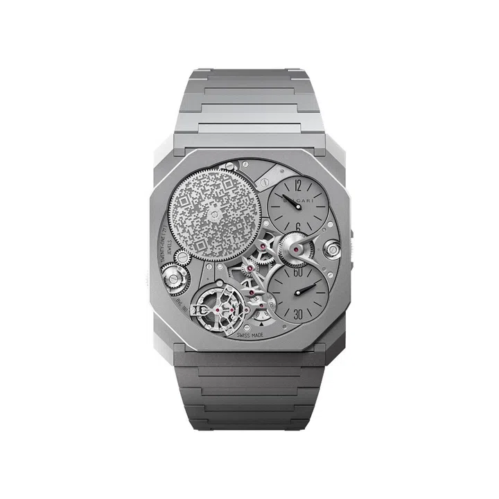 Vacheron Constantin makes a strong argument for titanium as a case material of choice in high horology with its Overseas Tourbillon Skeleton. It is the brand’s first watch to be made entirely from titanium – including the 42.5mm case, integrated bracelet, crown and bezel. It uses Grade 5 titanium, which is alloyed with aluminium and vanadium to make it stronger.