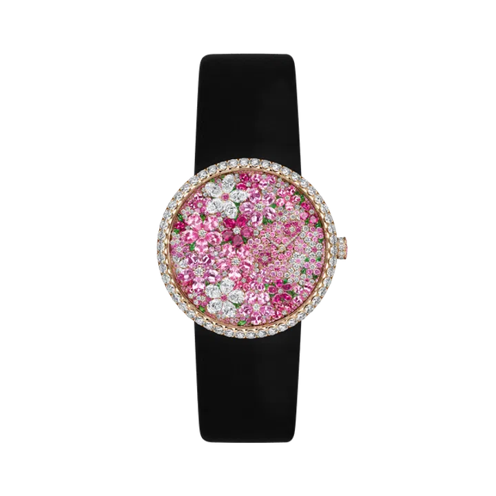 A diamond garden is in full bloom on Dior’s new La D de Dior. Drawing from Christian Dior’s lifelong love for flowers and gardening, this watch features a rose gold dial set with precision-cut diamonds, pink sapphires, rubies and tsavorite garnets to form a lush bouquet. Complete with a diamond-studded bezel and crown, it looks like a piece right out of a princess fantasy. Someone call Glinda the Good – she needs to see this one.