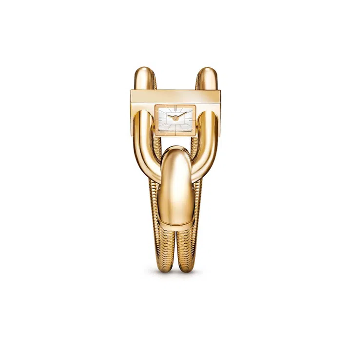 That changed in 2022 when the maison gave it a contemporary refresh by introducing a metal link bracelet version (available in rose gold or steel) - its metalwork being inspired by the the design of the four-studded clasp serving to secure and open the padlock on the Kelly bag. And if that isn’t innovative enough - the padlock case is detachable; it can be added to existing necklaces or leather cords you may have so that it becomes a necklace that tells the time or attached as an accessory to a bag for instance.