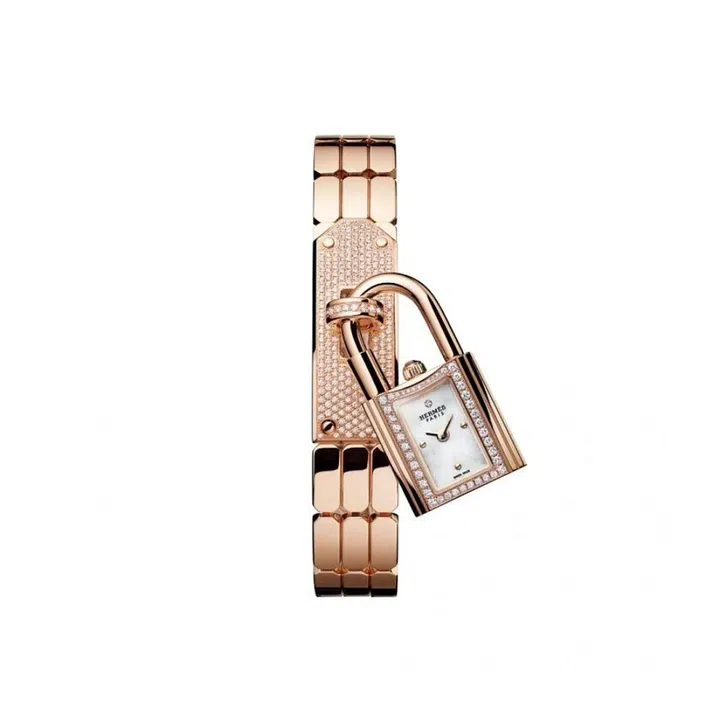 Hermes Kelly 18K pink gold watch with diamonds on matching bracelet, from $55,000