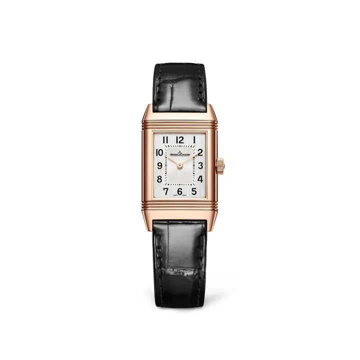 Jaeger-LeCoultre Reverso Classic Small 18K pink gold watch on leather strap, $22,600