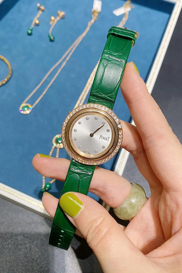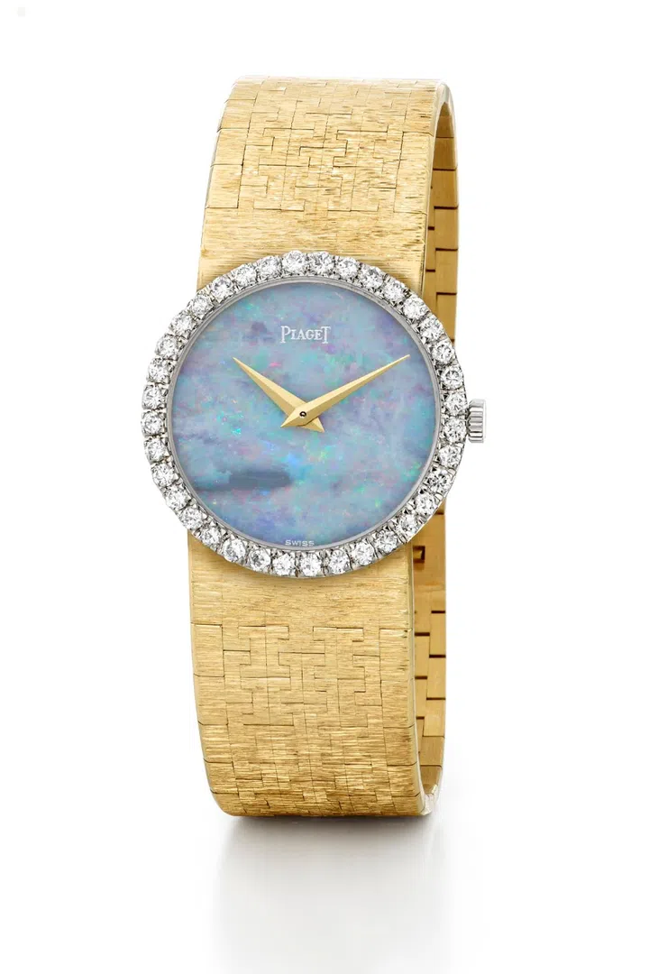 Women have long been wearing wristwatches not just for their time-keeping function, but as objects of desire. Clock the photo of the consummate watch and jewellery fiend Elizabeth Taylor and her man Richard Burton at the top of this article. On her wrist is a stunning yellow gold timepiece from Piaget created in 1967 that featured 36 diamonds framing the iridescent opal dial. It's a thing of beauty powered by a feature that will make watch geeks swoon: the ultra-thin hand-wound Piaget 9P mechanical movement that was introduced in 1957.