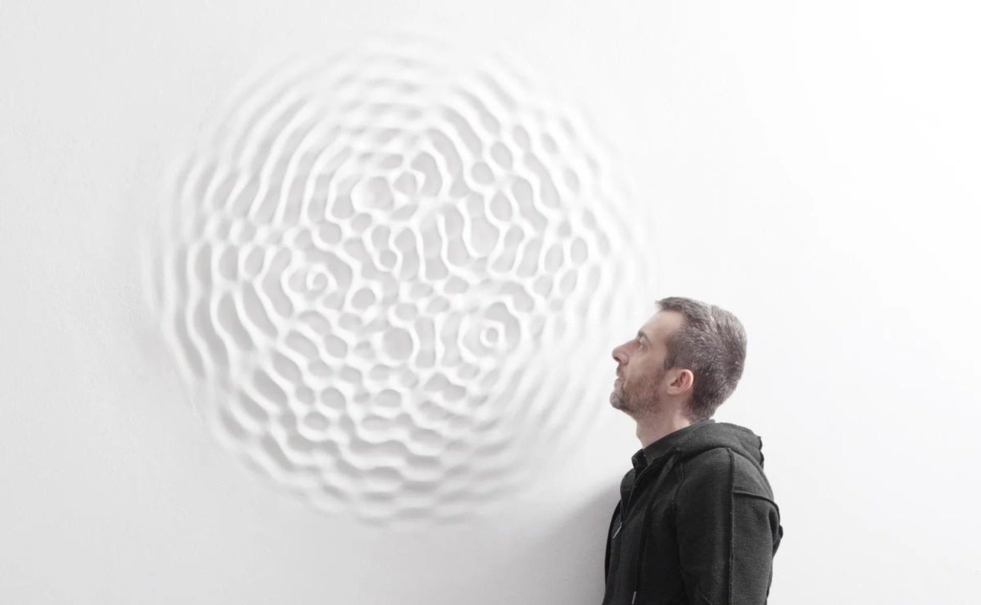 Loris Cecchini and his original Wallvave vibration (momentum wavevector chorus) installation from 2012.